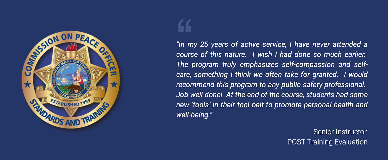 Compassion Institute is delighted to share news that the Commission on Peace Officer Standards and Training (POST) organization has awarded our core Courageous Heart training courses with full POST certification. Students will receive training credits for each course they complete:
