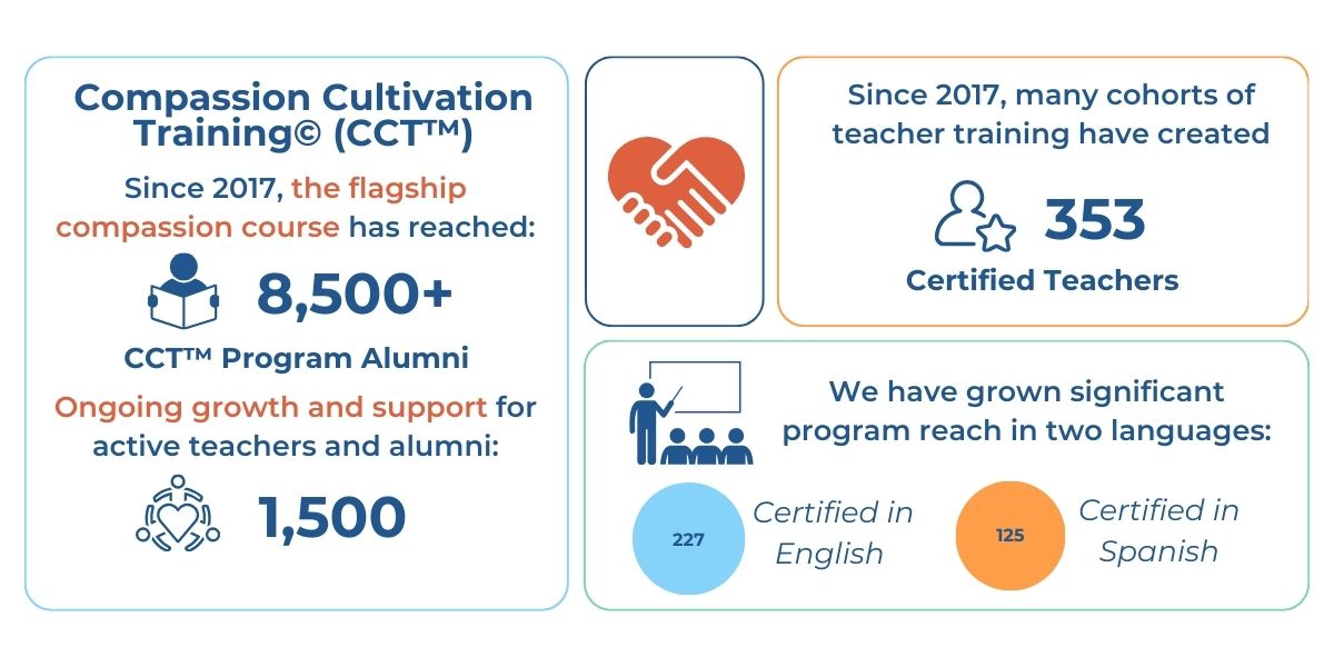 - ⦿ $250 can help spread compassion practices and courses globally via CCT Teacher Training sessions & organizations who serve marginalized communities.