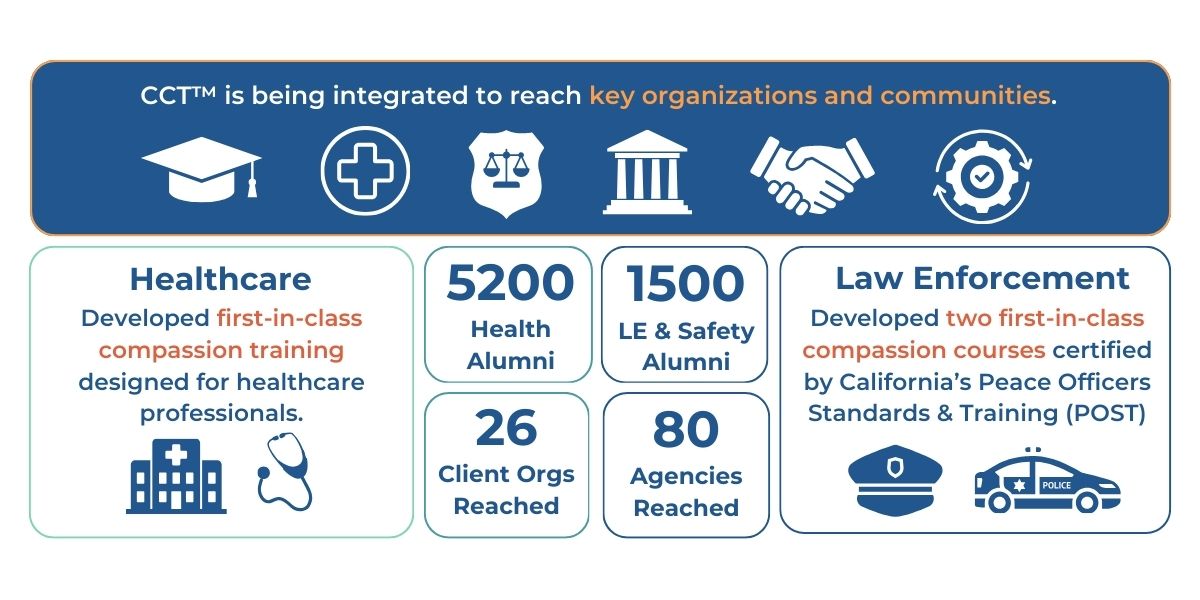 Through scientifically-backed compassion trainings, thousands of participants have discovered tools and skills to actively engage compassion in the moment. You’ll find this positively impacts individuals and organizations who are most in need.